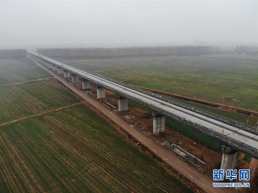 12月2日拍摄的鲁南高铁山东临沂段(无人机拍摄)。