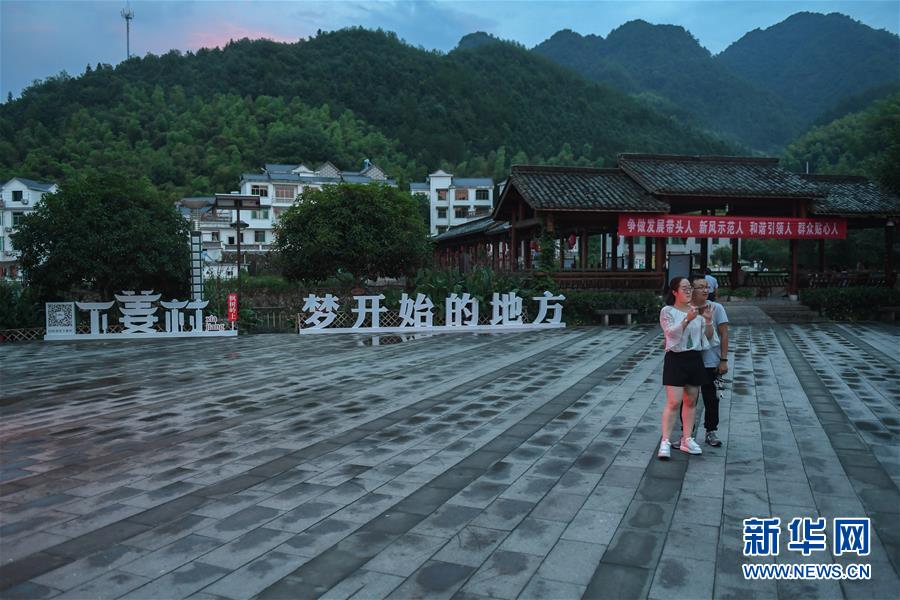 游客在下姜村的小广场游览(2017年8月9日摄)。