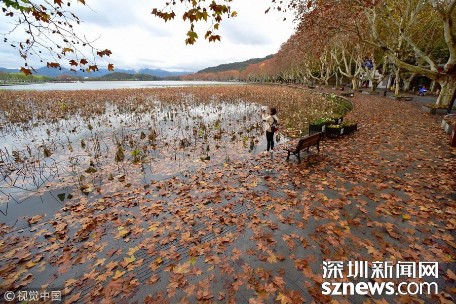 2018年12月4日,第一波冷空气杀到杭州。西湖景区,落叶成了一道独特的风景。