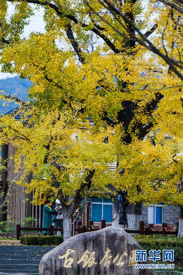 11月16日,游客在银杏林中游玩。近日,在浙江省长兴县小浦镇,“十里银杏长廊”和近千亩花海经过近一年的升级改造后,以崭新的面貌与游客见面。花海、观光小火车、古村民宿、银杏长廊等旅游项目全面提升了小浦镇乡村旅游的品质。新华社记者 何璐璐 摄