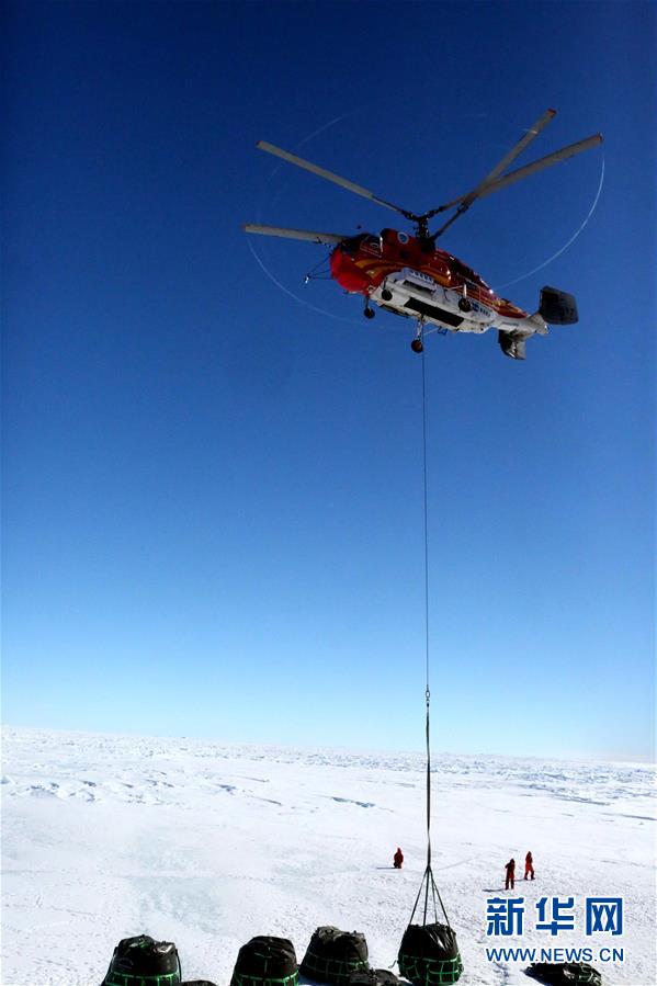 搭载中国第35次南极科考队的“雪龙”号极地考察船,日前到达距离中山站44公里处的陆缘冰区。经过紧张的冰上探路确定冰面卸货路线后,一场“海陆空”全天候卸运物资的“战役”在南极冰天雪地中打响。