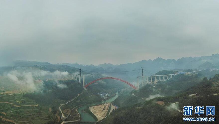 9月12日使用无人机拍摄的大小井特大桥。目前,横跨在贵州省罗甸县大井河上的大小井特大桥建设进入冲刺阶段。大小井特大桥全长1.5公里,主跨450米,是世界最大跨径上承式钢管混凝土拱桥。据了解,该桥是平塘至罗甸高速公路关键性工程,对打通贵州“断头路”,助推滇黔桂石漠化片区脱贫攻坚具有重要意义。新华社记者刘续摄