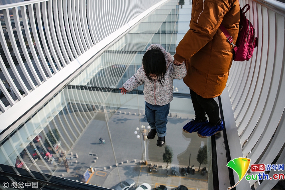初生牛犊不怕虎,不少儿童走在玻璃吊桥上若无其事,大步流星地往前走,而其身后的家长则是紧贴着一侧的栏杆,双手紧握扶手挪步前行,双眼一直不敢往下看。全程走下了,游客的手掌布满了冷汗。