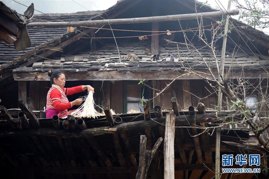 12月4日,在云南省澜沧拉祜族自治县酒井乡勐根村老达保寨,村民在露台上做农活。 新华社记者张瑞琪摄