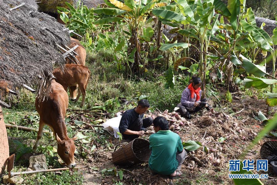 12月3日,在云南省澜沧拉祜族自治县南岭乡勐炳村龙潭老寨,村民在芭蕉地里做农活。 新华社记者张瑞琪摄