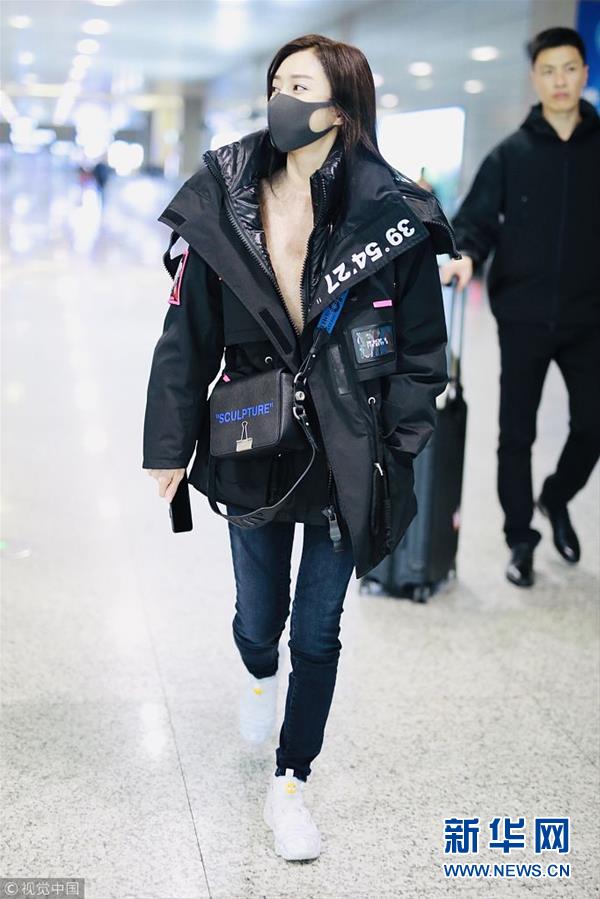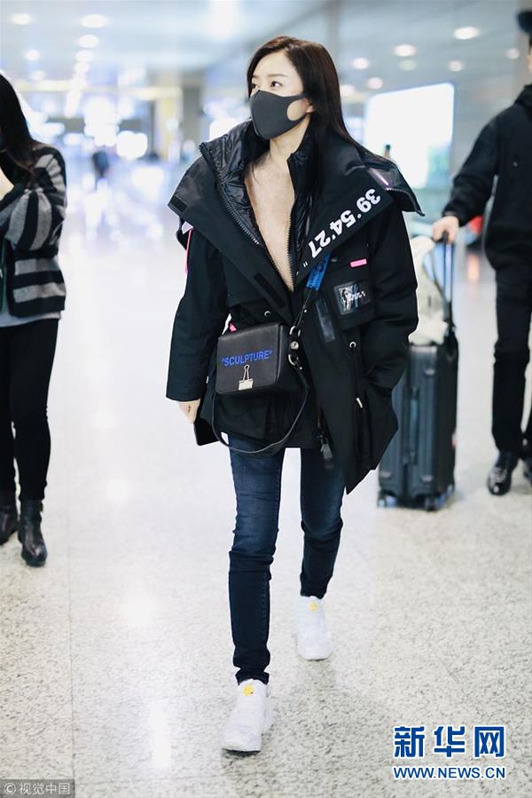 秦岚潮味棉服亮相机场 口罩遮面露甜笑