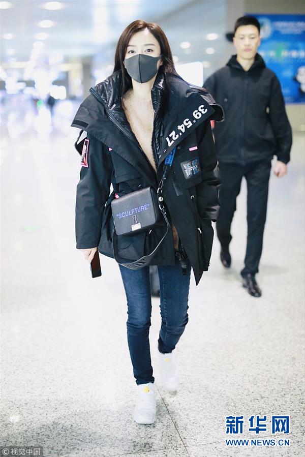 秦岚潮味棉服亮相机场 口罩遮面露甜笑