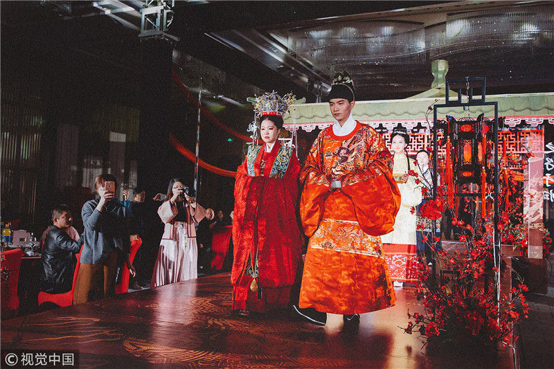浙江嘉兴:女子耗时六年筹办汉婚大礼 现场富丽堂皇