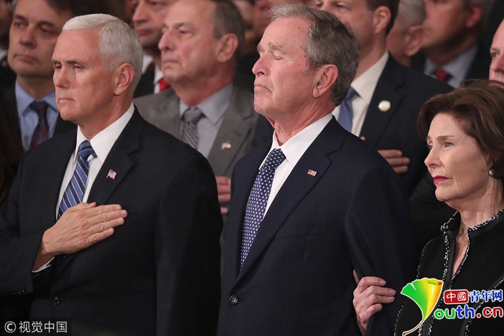 布什家族成员小布什、副总统彭斯等多位政界人士出席仪式。