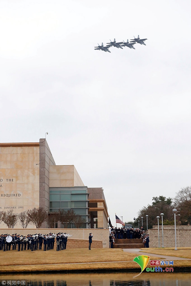 老布什灵柩下葬德州家族墓地 21架F18战机编队悼念
