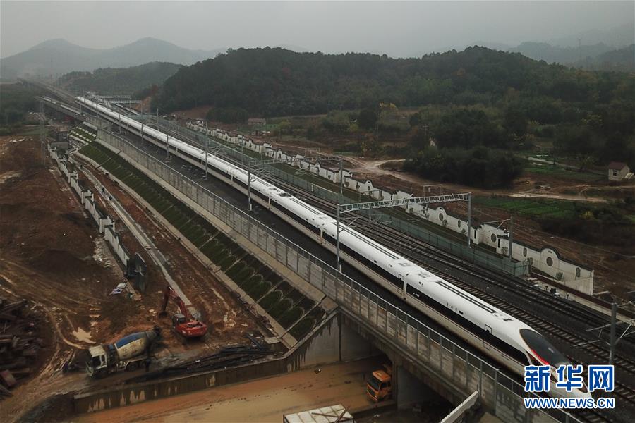 当日,两辆“复兴号”动车组列车首次在处于试运行阶段的杭黄铁路上行驶,列车在杭州南站与黄山北站间多次往返“试跑”。 杭黄铁路连接浙江杭州与安徽黄山,并穿过富春江、新安江、千岛湖等风景名胜区。据了解,杭黄铁路计划于12月底开通运营。