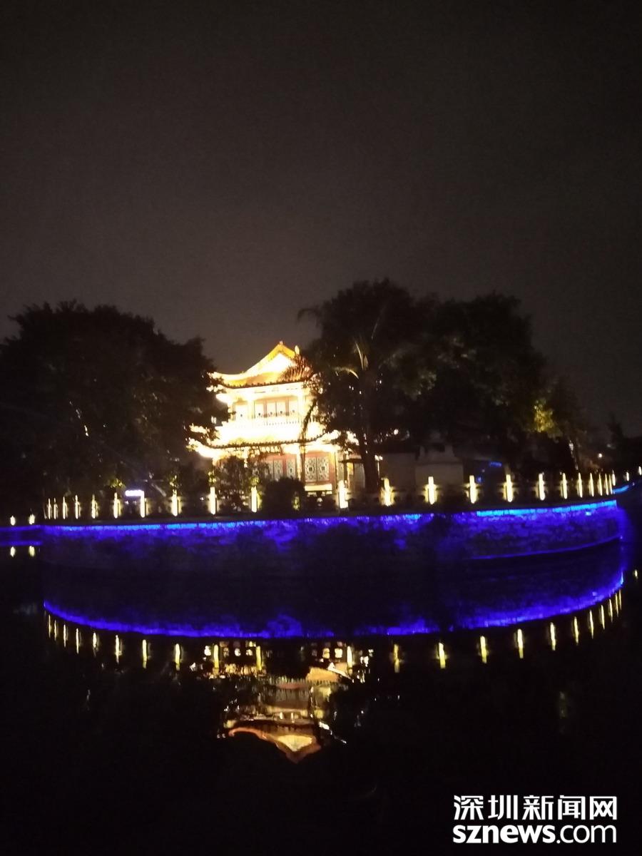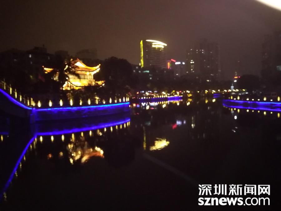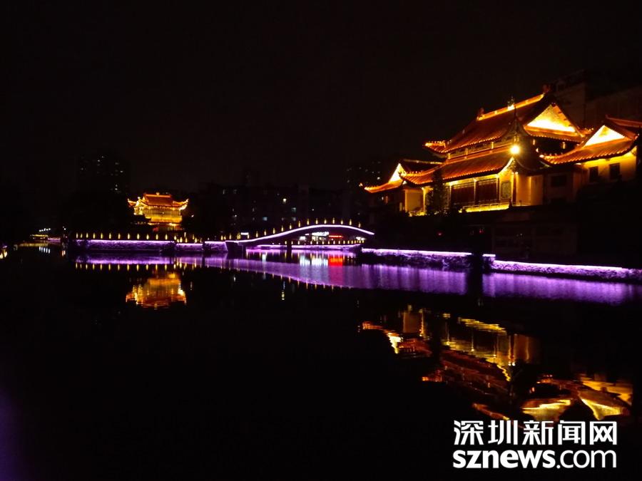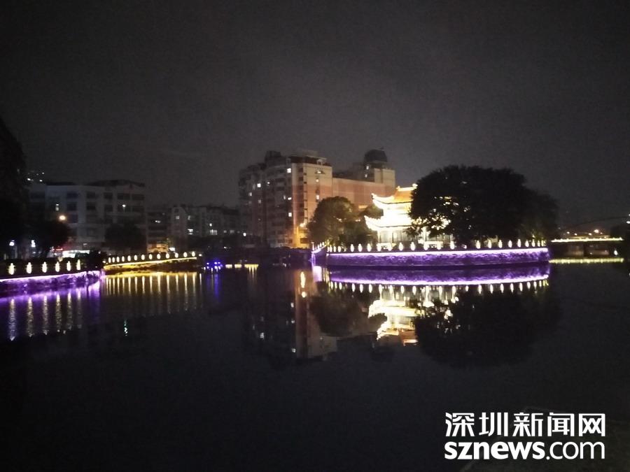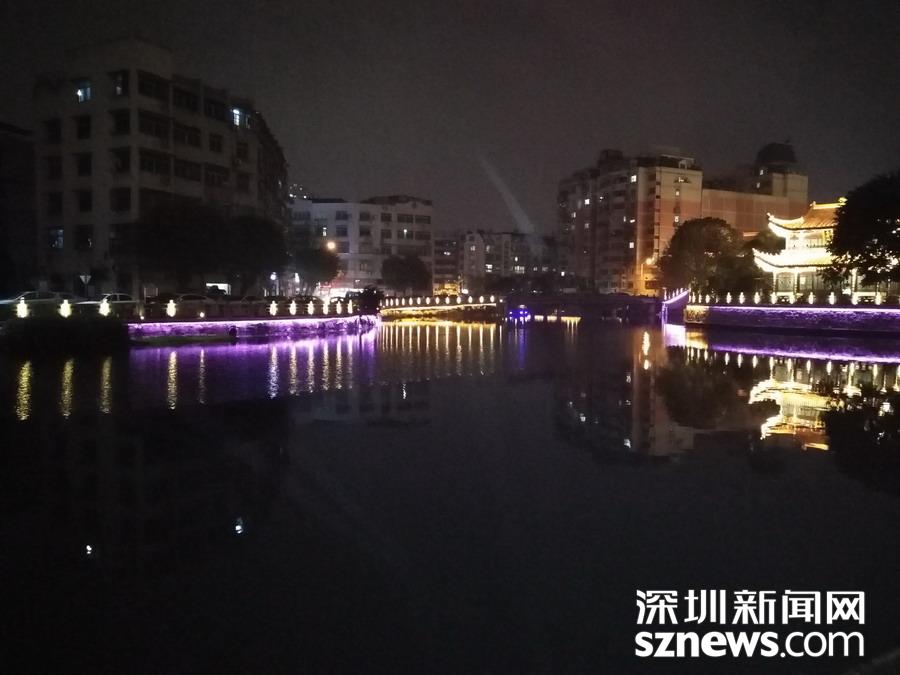 百里塘河穿市而过 ,灯光水光,相映成趣。 吴超摄