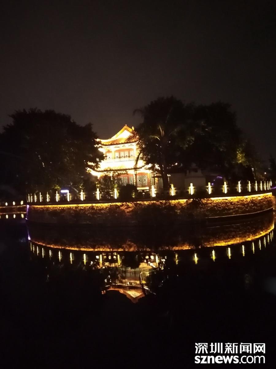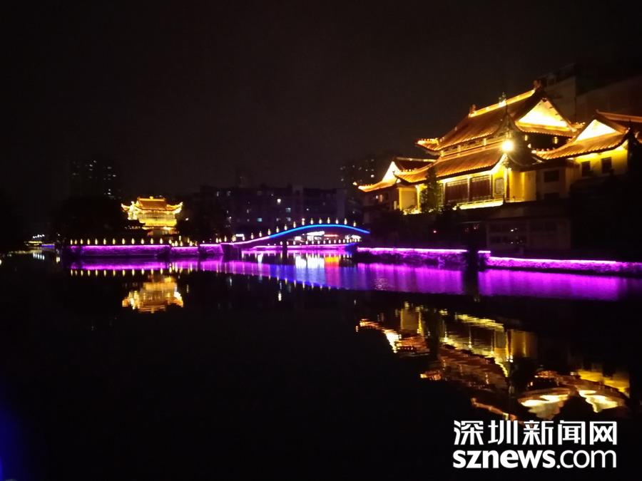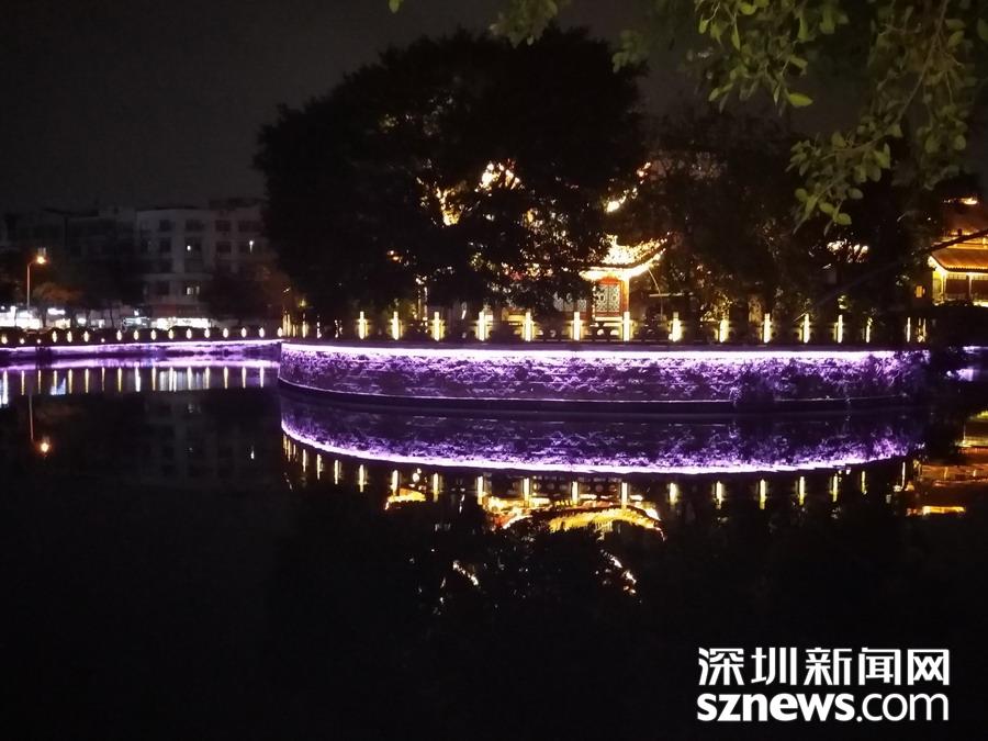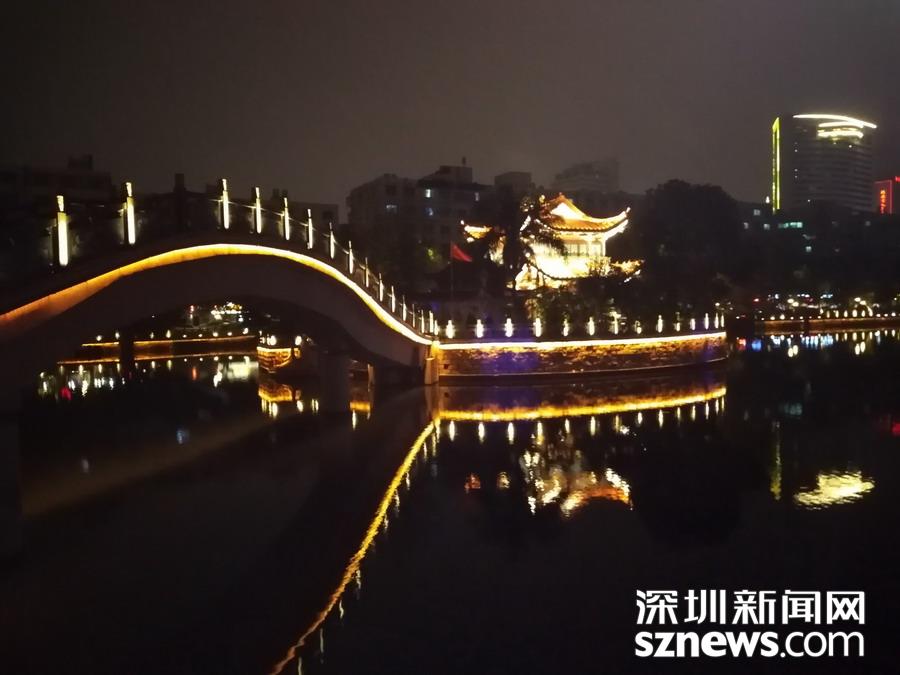 百里塘河穿市而过 ,灯光水光,相映成趣。 吴超摄