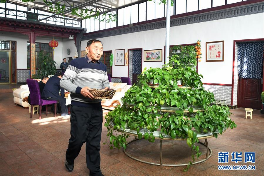 73岁的甘肃省敦煌市莫高镇甘家堡村村民吴兴科在自家的农家客栈里忙碌(11月28日摄)。 敦煌记录历史。开放的胸襟,曾让这里成为古代丝绸之路上“华戎所交一都会”。 时隔千年,改革开放的春风吹入西北内陆小城,敦煌再度成为中国对外开放的文化前沿。 新华社记者 陈斌 摄
