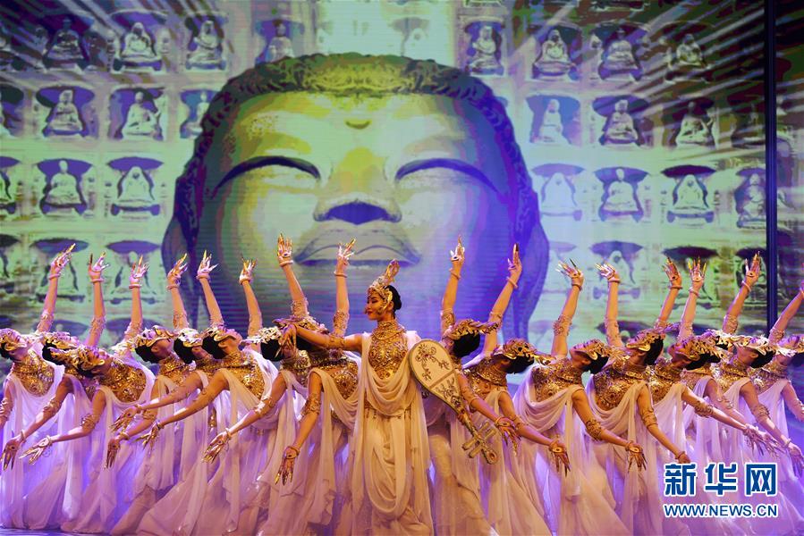 演员在敦煌飞天剧院表演舞剧《丝路花雨》(11月28日摄)。 敦煌记录历史。开放的胸襟,曾让这里成为古代丝绸之路上“华戎所交一都会”。 时隔千年,改革开放的春风吹入西北内陆小城,敦煌再度成为中国对外开放的文化前沿。 新华社记者 陈斌 摄