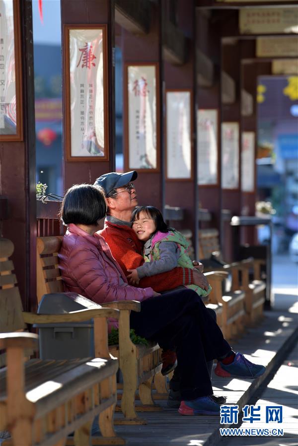 居民在江西宜春温汤镇的文化长廊休闲(2月28日摄)。新华社记者 彭昭之 摄