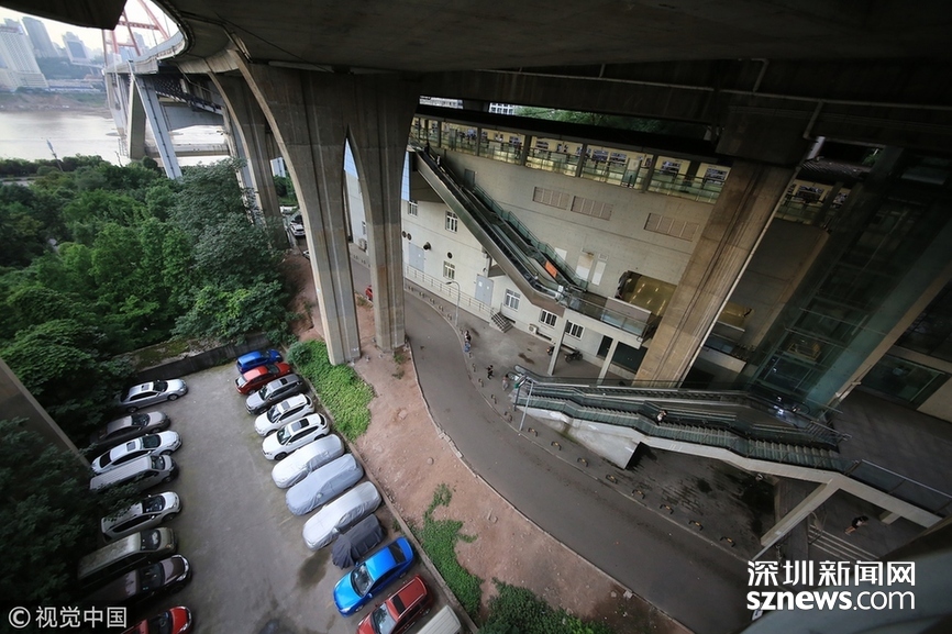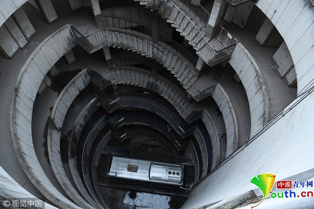 重庆洋人街景区内的穿楼观光索道吸引不少游客体验。据悉,跨度长1000米的观光索道将随着洋人街的拆迁而搬离。中新社记者陈超 摄 2017年9月27日,重庆,南岸区某小区的“螺旋”停车场,从公路到车库要下5层楼,司机需要转无数个360度圈。图片来源:视觉中国