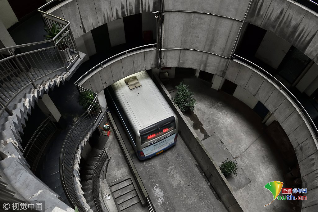 探秘重庆魔幻八层圆筒型转转楼 公交车穿其而过