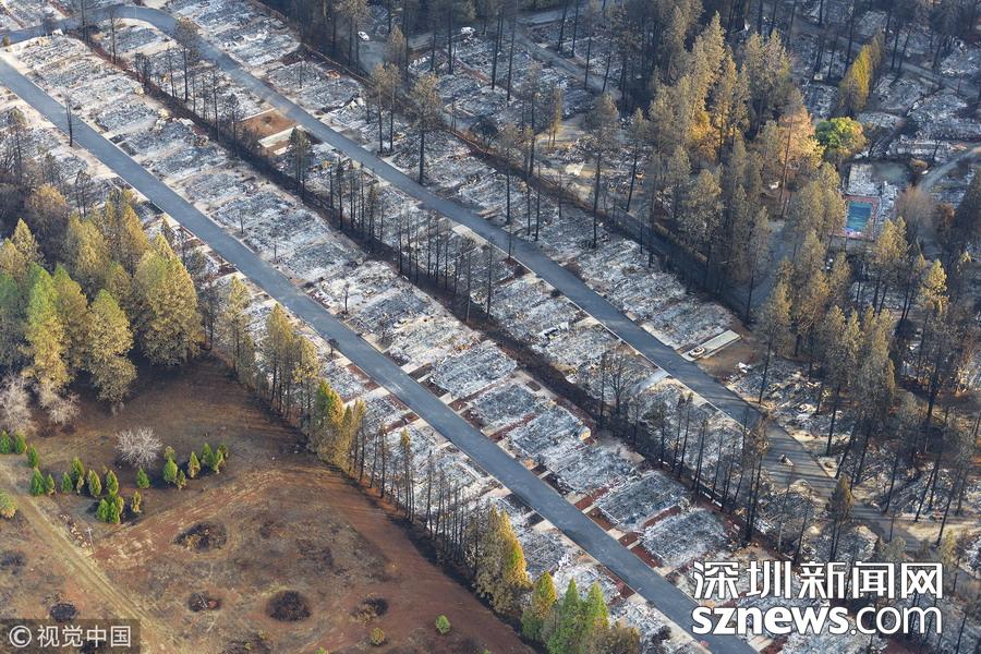 深圳新闻网2018年12月13日讯 当地时间2018年12月10日,美国加州,成千上万英亩的土地被野火烧毁,数百栋建筑变成灰烬。“坎普”大火是加州历史上最致命和破坏性最大的野火,导致88人死亡,超过18000座建筑被毁。