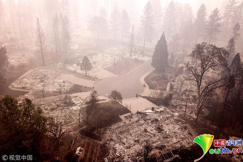 “坎普”山火使加州天堂变“地狱” 已致88人死亡近2万座建筑被毁