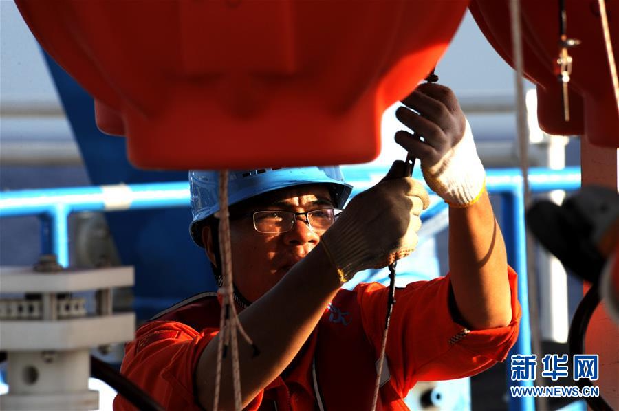 考察队员在布放“彩虹鱼”着陆器前进行检查工作(12月10日摄)。 由上海海洋大学和西湖大学联合组成的“彩虹鱼”科考团队,12月11日在全球最深的海沟——马里亚纳海沟成功完成两台“彩虹鱼”第二代着陆器的万米级海试,深度分别为10918米和10899米。 新华社记者 张建松 摄