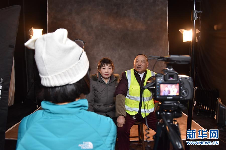 摄影师罗娴在拍摄前和农民工夫妻聊天(12月10日摄)。 新华社记者 白田田 摄