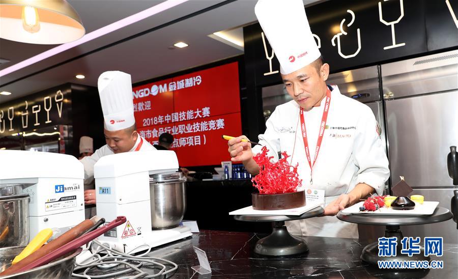 12月13日,一名选手在比赛现场对珊瑚造型的蛋糕装饰进行修整。 当日,2018年中国技能大赛——上海市食品行业职业技能竞赛(西式面点师项目)在上海环球港举行。活动分为竞赛和展示两部分,近400名选手参加竞赛部分比拼,最终进入决赛的25名选手的作品在现场进行展示评比。 新华社记者 方喆 摄