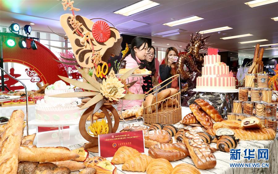 12月13日,参观者在烘焙和糖艺成品展示现场参观。 当日,2018年中国技能大赛——上海市食品行业职业技能竞赛(西式面点师项目)在上海环球港举行。活动分为竞赛和展示两部分,近400名选手参加竞赛部分比拼,最终进入决赛的25名选手的作品在现场进行展示评比。 新华社记者 方喆 摄