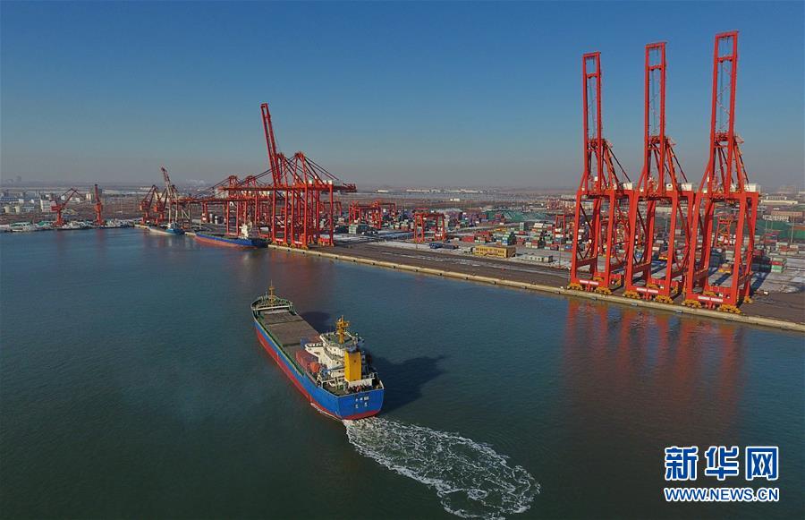 12月13日,一艘轮船在向唐山港京唐港区集装箱码头靠泊(无人机拍摄)。 记者从河北省交通运输厅获悉,2018年1至11月,河北省港口货物吞吐量完成10.5亿吨,为年度计划的104%,同比增长5.1%,位居全国沿海省份第四位。 新华社记者杨世尧摄
