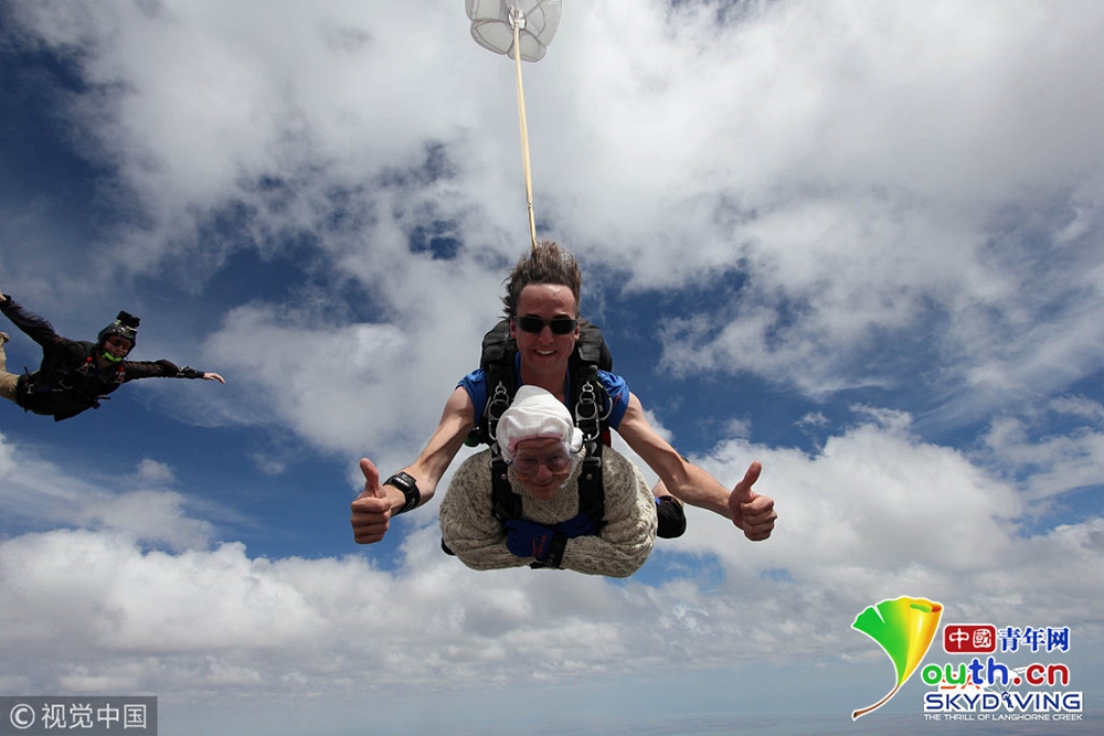 澳洲102岁奶奶玩高空跳伞 背后原因很暖心