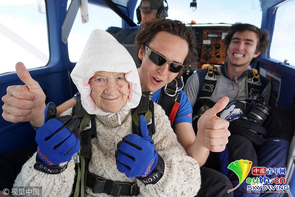 澳洲102岁奶奶玩高空跳伞 背后原因很暖心