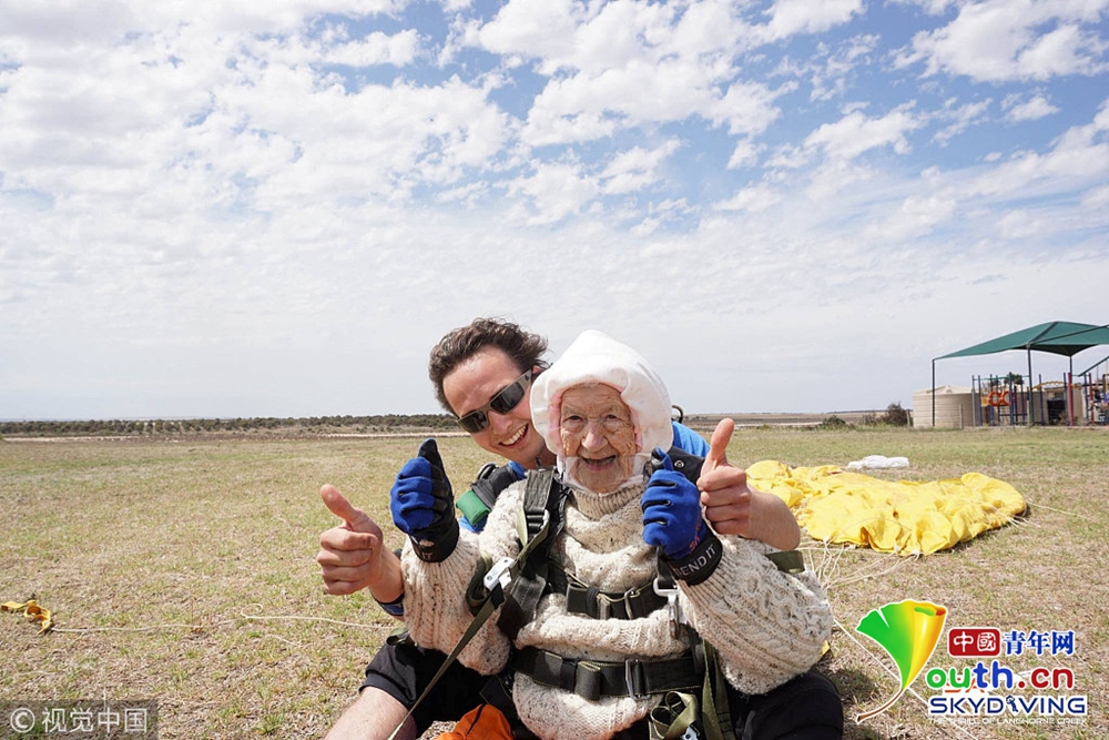 澳洲102岁奶奶玩高空跳伞 背后原因很暖心