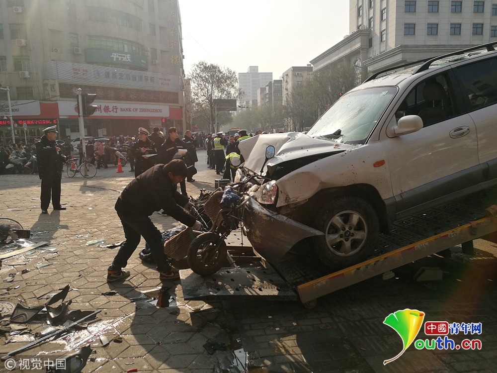 郑州一SUV失控冲进街边店铺 致1死8伤