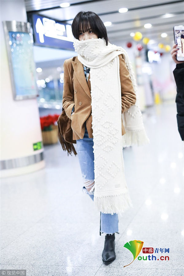 2018年12月16日,宋茜从上海机场飞往北京机场。她身穿短款薄外套,搭配破洞牛仔裤,要风度不要温度,一路低头前行闷闷不乐似遇愁心事,到了北京之后她又裹起了厚围巾,但依旧闷闷不乐。