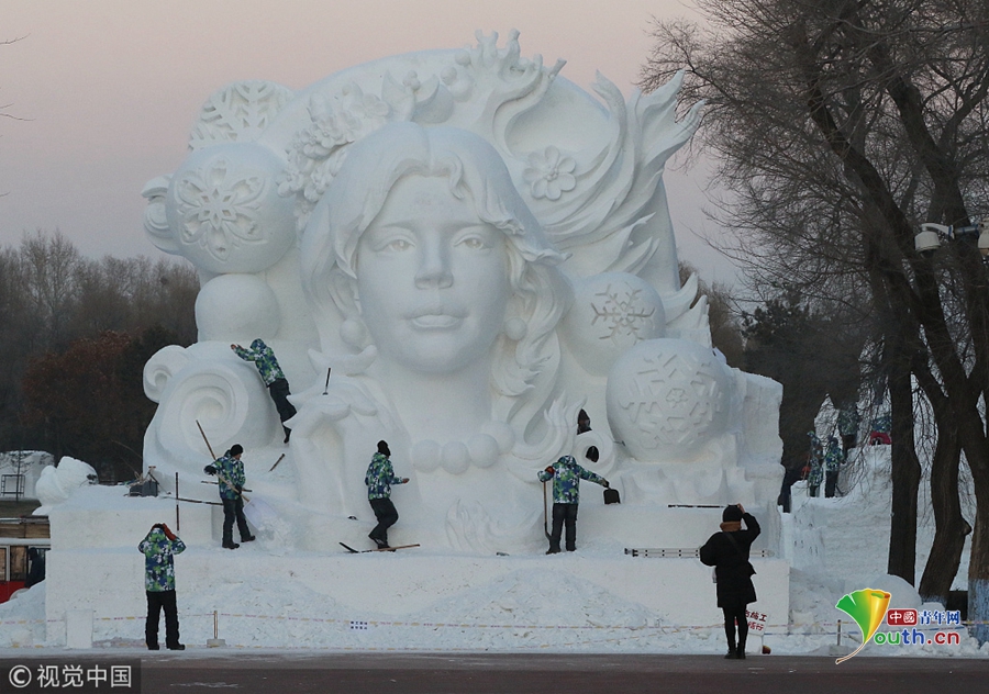 探秘哈尔滨太阳岛雪博会:雪雕师精雕细刻建造忙