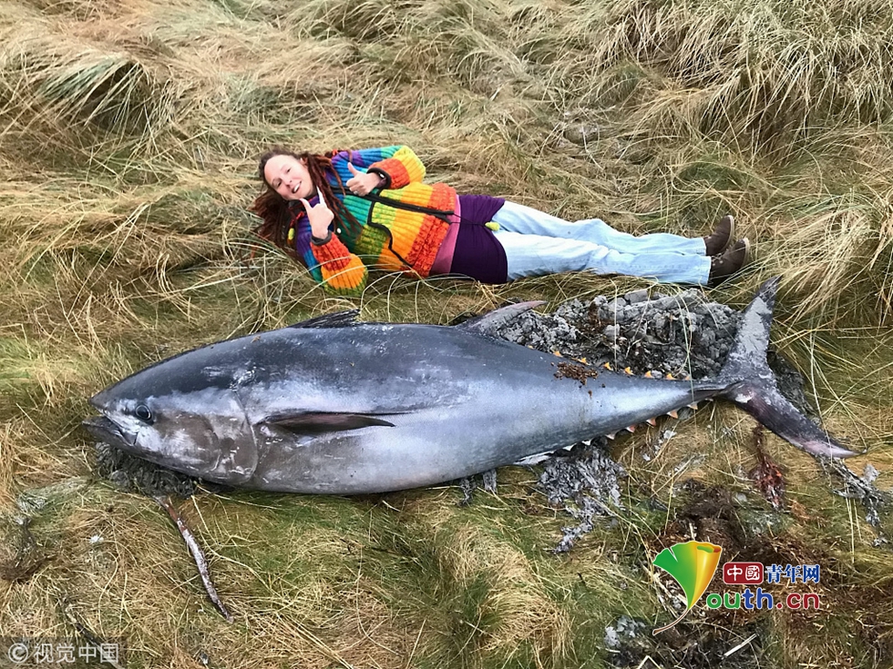 比人还大!狂风暴雨后2米长巨型蓝鳍金枪鱼搁浅沙滩