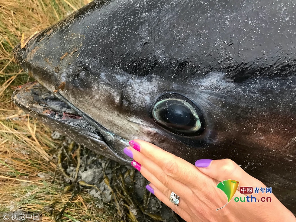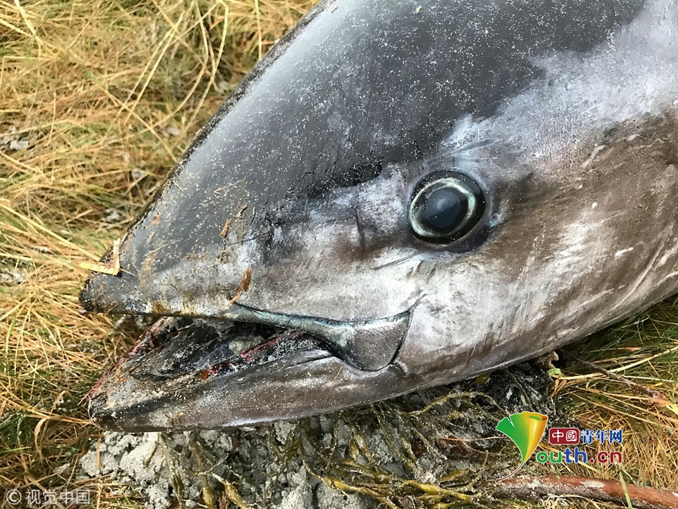 英国沙滩现2米长巨型蓝鳍金枪鱼