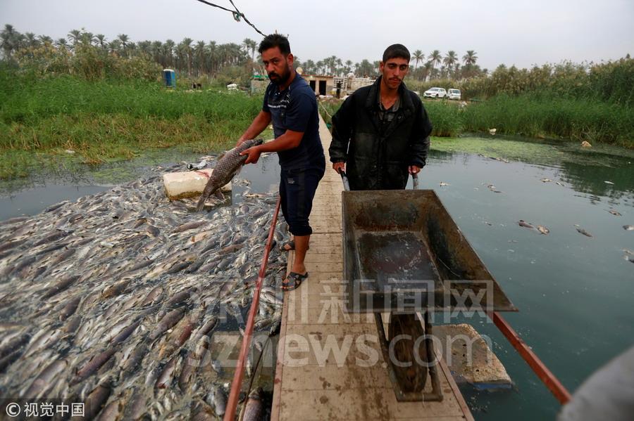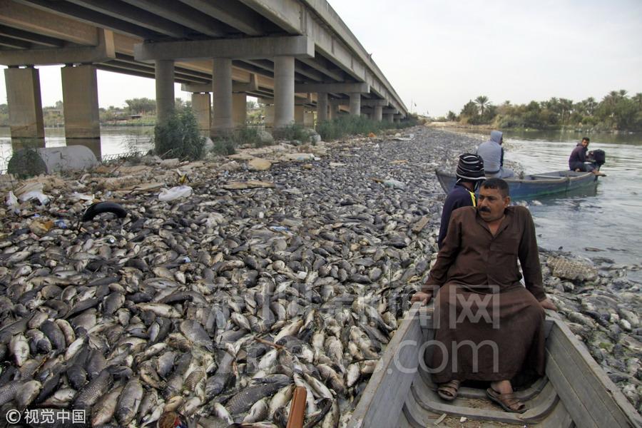 伊拉克河流一夜之间漂浮数万死鱼 密密麻麻挤满河道