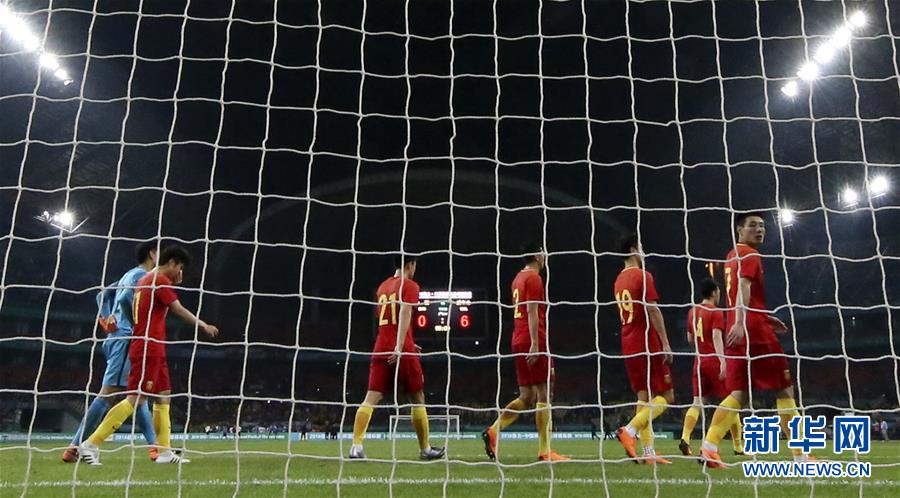 图为2018年3月22日,中国队球员在广西南宁体育中心举行的2018中国杯国际足球锦标赛中以0比6不敌威尔士队后离场的资料照片。 新华社记者曹灿摄