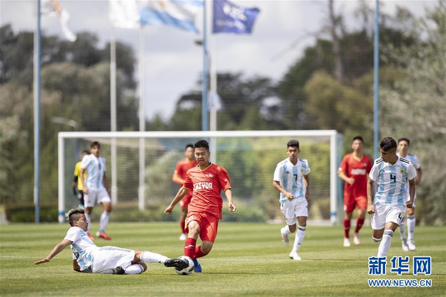 图为2018年11月28日,中国球员张文豪(左二)在阿根廷布宜诺斯艾利斯的阿根廷国家足球训练基地中训练的资料照片。中阿足球合作计划“阿根廷国家足球训练基地体验活动”于11月28日启动。来自北京体育大学中国足球运动学院的青少年足球运动员与教练员正式进驻阿根廷国家足球训练基地,在这里接受30天的高水平训练。 新华社记者李明摄