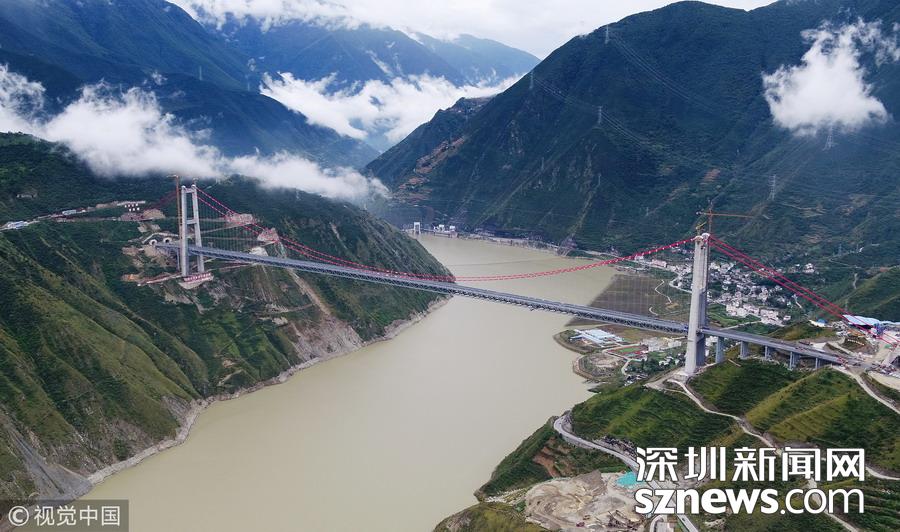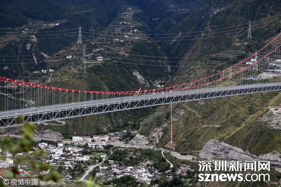 深圳新闻网讯 全长1411米、跨径1100m、总造价超过10亿元,被誉为“川藏第一桥”的雅康高速泸定大渡河兴康特大桥路面施工完成,具备了通行能力。