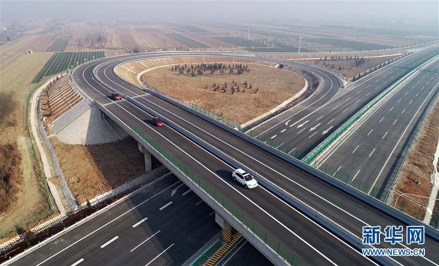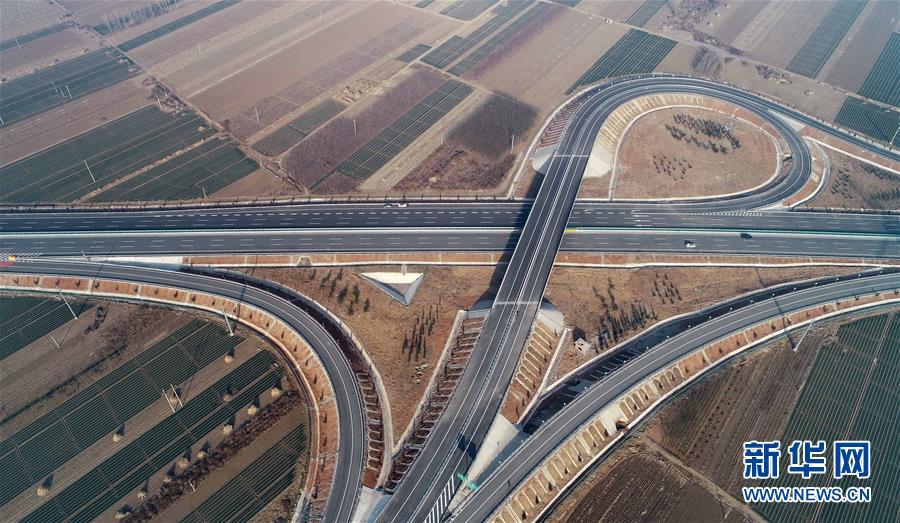 12月16日无人机拍摄的京秦高速公路二期工程河北玉田西进出口处的立交桥。新华社记者杨世尧摄