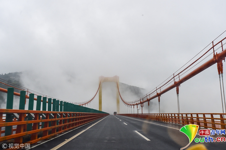 普立大桥云飘雾绕如仙境 一路风光美不胜收