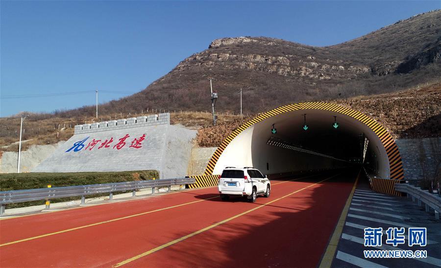 12月16日,一辆汽车行驶在京秦高速公路二期工程河北玉田境内的凤凰顶隧道路段(无人机拍摄)。 新华社记者杨世尧摄