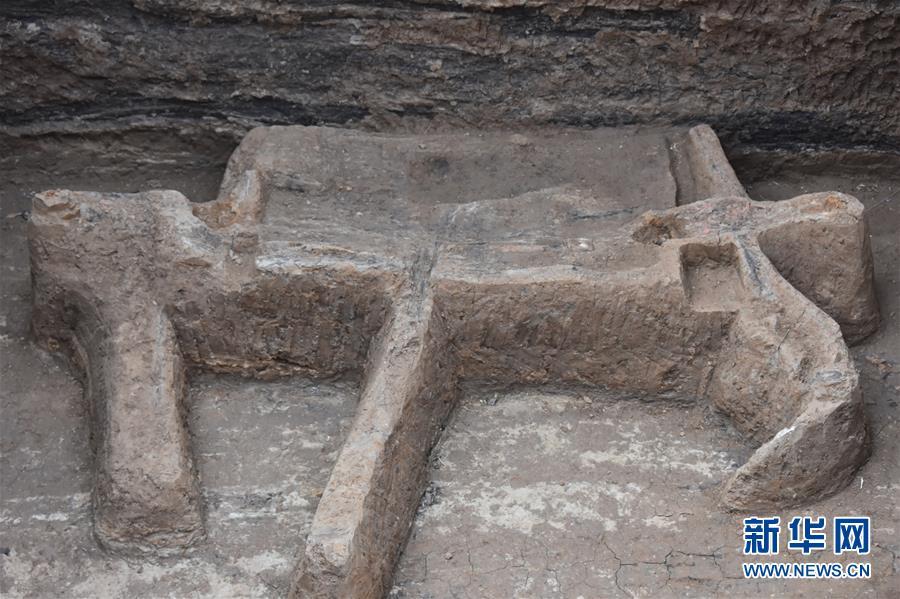 12月7日拍摄的吴山祭祀遗址内发掘的车马祭祀坑局部。 新华社记者都红刚摄