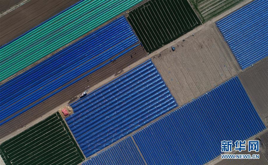 2018年4月20日,唐山市丰润区新军屯镇新军屯村农民在播种生姜。 大地之色,俯仰之间;壮美山河,是我的祖国。2018年,新华社记者操纵无人机“飞阅”华夏大地,在最美的时节,定格下她的色彩斑斓。 新华社记者 杨世尧 摄