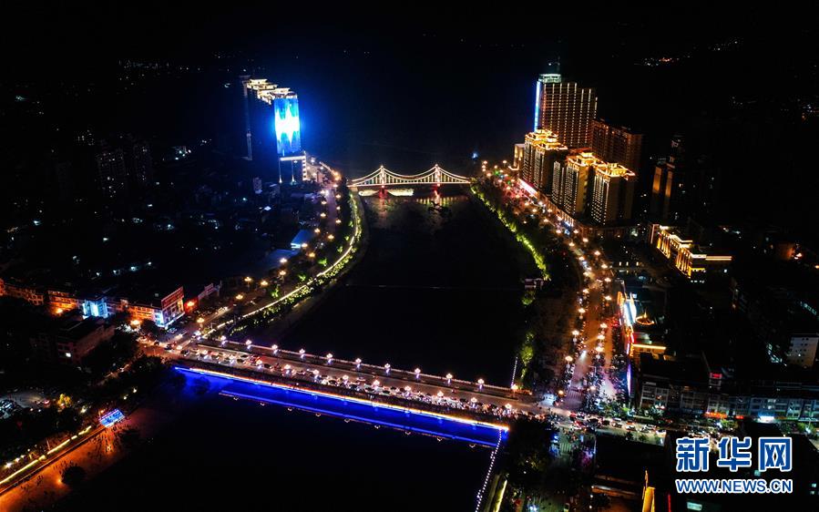 夜幕降临,地处广西东北部的荔浦市街头霓虹闪烁,小城夜色如诗如画。