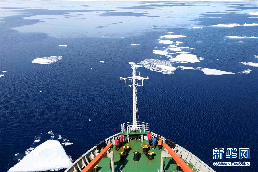 连日来,中国第35次南极科考队搭乘的“雪龙”号极地考察船航行在普里兹湾。普里兹湾是“雪龙”号抵达南极中山站前经过的最后一片海域。