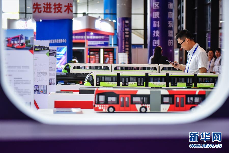 在广西南宁国际会展中心展出的中车集团的新型公共交通车辆模型(9月13日摄)。
