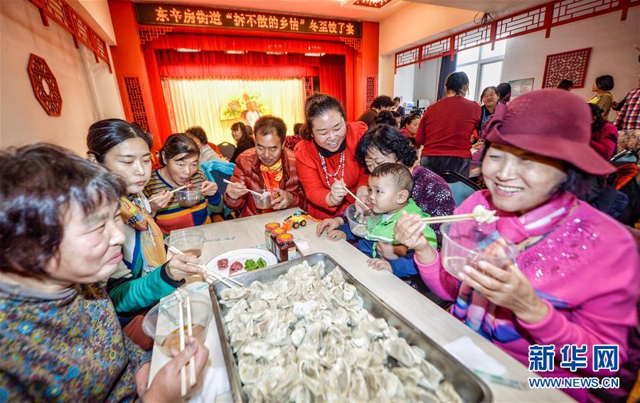 12月20日,老邻居们一起吃饺子叙友情。 当日,北京市门头沟区东辛房街道一百多名棚户区改造后搬进新楼房的老邻居们聚在一起包饺子、吃饺子,迎接即将到来的冬至。 新华社记者李欣摄